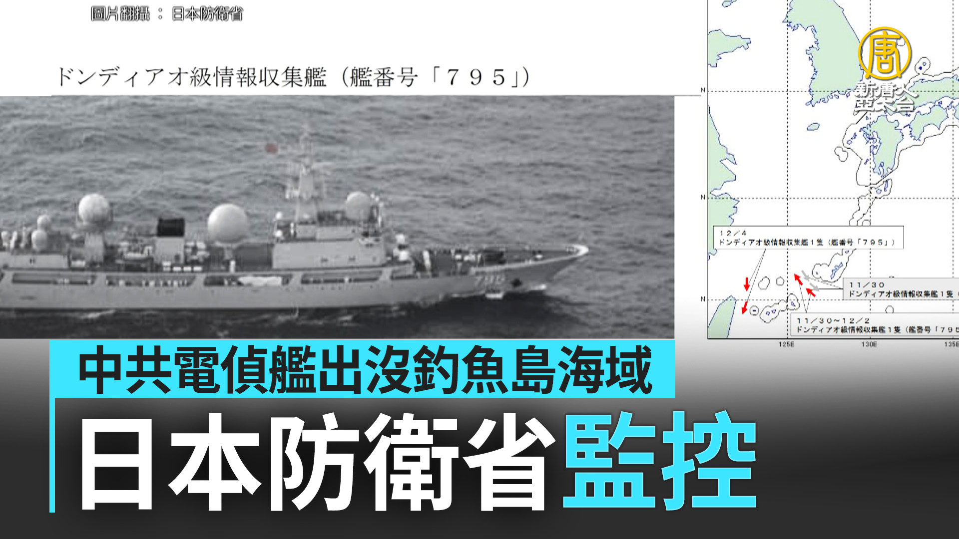 【新唐人亞太台 2023 年 12 月 05 日訊】新聞一開始,來關心,日本防衛省公布中共軍艦動向。一艘型號為815的中共電子偵察艦(艦號795),在11月底到12月初時,於宮古島東北海域活動,並在12月4日在台灣東部外海距離釣魚島80公里海域,由北向南駛向太平洋。日方派出部署在沖繩與那霸的部隊進行監視。而台灣國防部4日是偵獲7艘共艦在台海周邊活動。
