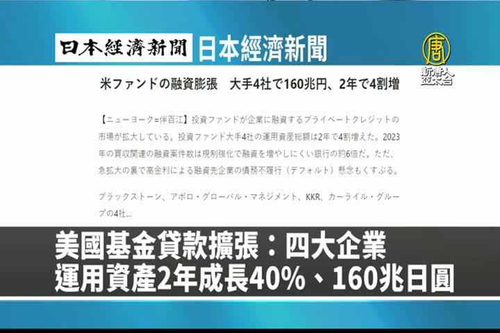 【新唐人亞太台 2023 年 12 月 06 日訊】來看到日本經濟新聞報導:美國基金貸款擴張,四大企業運用資產2年成長40%、共計160兆日圓。