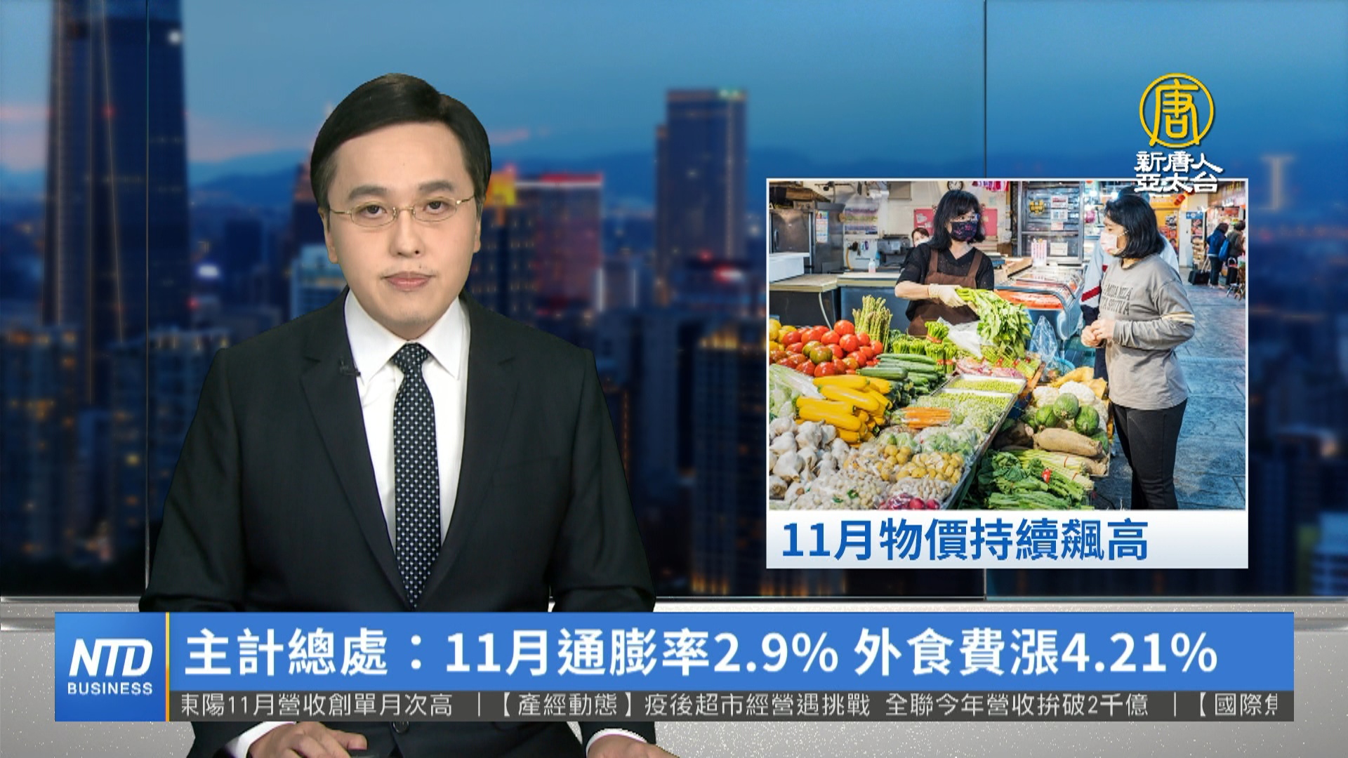 【新唐人亞太台 2023 年 12 月 06 日訊】行政院主計總處今天(6日)公布11月物價調查結果,由於外食費仍高,11月消費者物價數(CPI)年增率跌到2.9%,今年前11個月平均,較上年同期漲2.48%。如果扣除蔬菜水果漲2.36%,再剔除能源後之的總指數,核心CPI漲2.38%,跟10月相比顯得收斂。