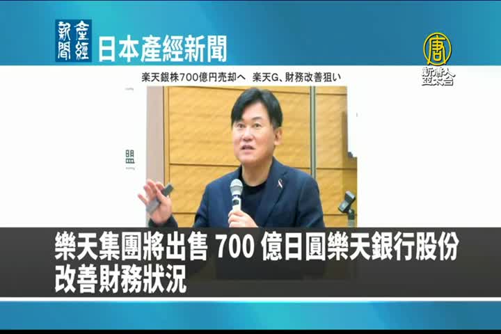 【新唐人亞太台 2023 年 12 月 07 日訊】來看到日本產經新聞報導:日本樂天集團將出售 700 億日圓樂天銀行股份,改善財務狀況。