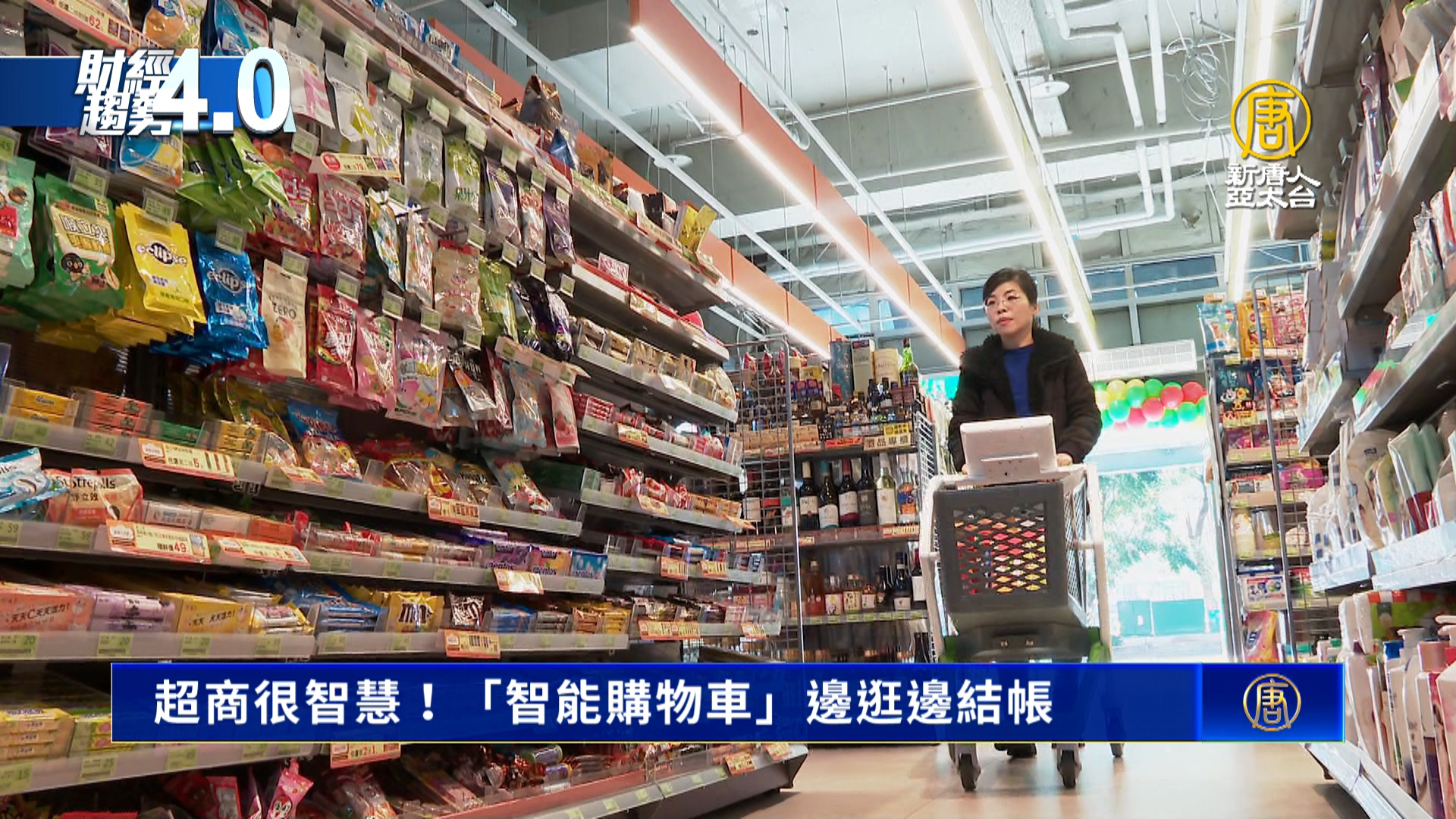 新唐人記者 李晶晶:「現在來到便利商店,選擇自己想要購買的商品,透過前方購物車智慧掃描的裝置,掃描一下就能自己結帳,省去排隊時間。」