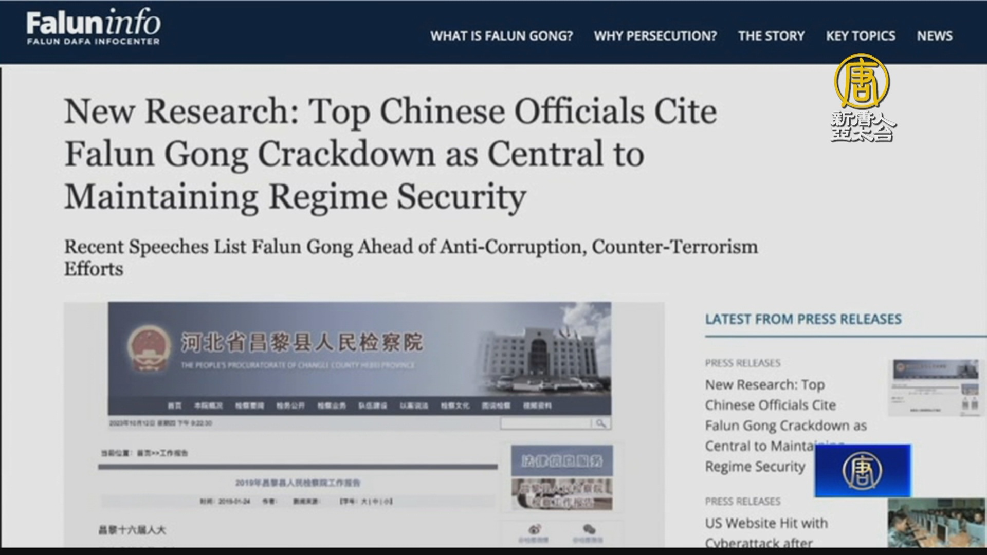 【新唐人亞太台 2023 年 12 月 09 日訊】法輪大法信息中心日前發布新研究,顯示中共對法輪功的殘酷迫害,再次走向公開化,並呼籲國際關注。