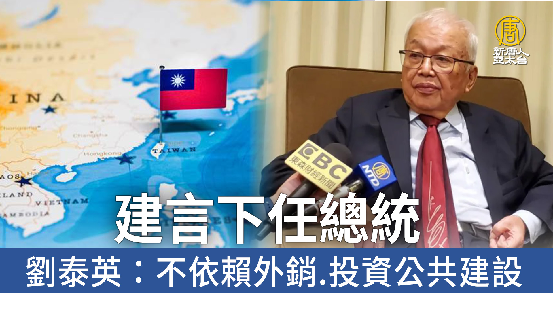 【新唐人亞太台 2023 年 12 月 13 日訊】2024總統大選倒數,針對三黨總統侯選人提出的經濟政見,台灣綜合研究院創辦人劉泰英表示,台灣的超額儲蓄太多,建議下任總統重視國家大型公共建設,並扭轉過去以外銷為主的經濟結構。