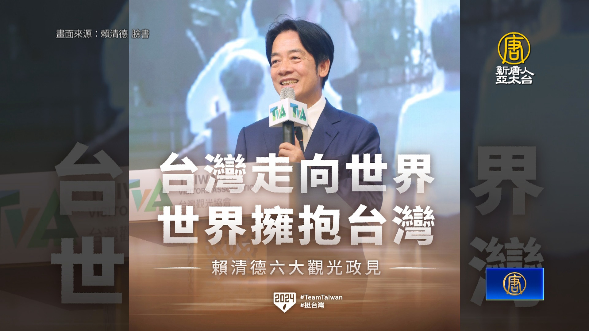 【新唐人亞太台 2023 年 12 月 14 日訊】民進黨總統候選人賴清德昨宣布要「觀光立國」,並提出六面向具體做法,包含「部部有觀光」、開發跨區域旅遊產品等,盼打造獨一無二的觀光品牌,同時也歡迎中國旅客在對等、尊嚴及互惠原則之下來台,並保證中客「絕對安全、絕對受尊重」。