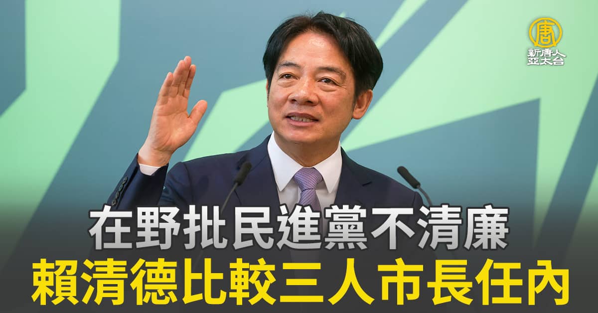 在野批民進黨不清廉 賴清德比較三人市長任內