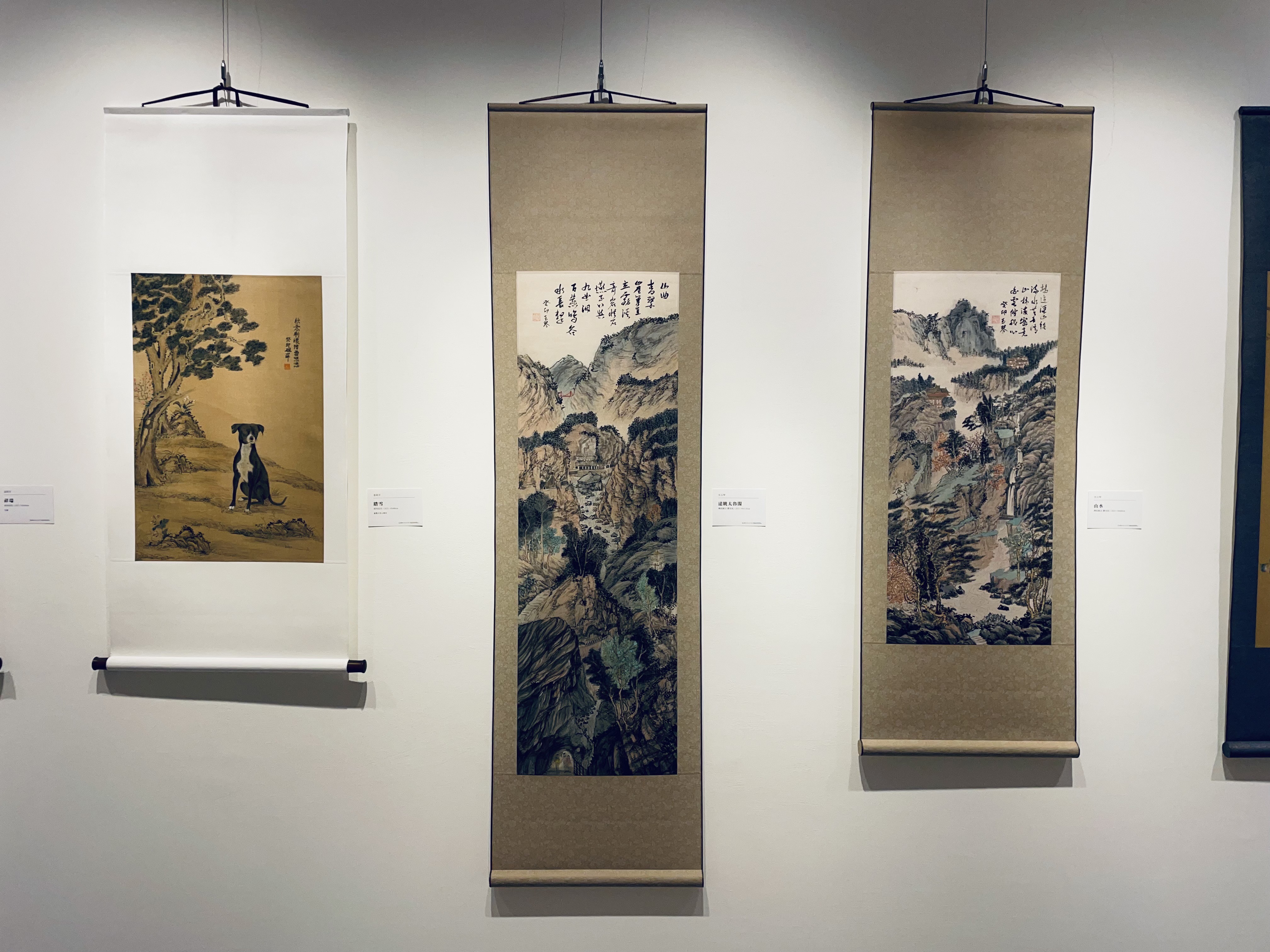 一進展覽會場即可看見,嶺南畫派畫家宋瑞和的「白猿」作品,頗具氣勢。另外畫家吳玉琴的太魯閣山水畫,以傳統的國畫皴法,體現台灣東部的自然美景,跳脫出傳統國畫框架。畫家宋瑞和、吳玉琴皆為文化大學美術系畢業,深具傳統及嶺南派的功力。