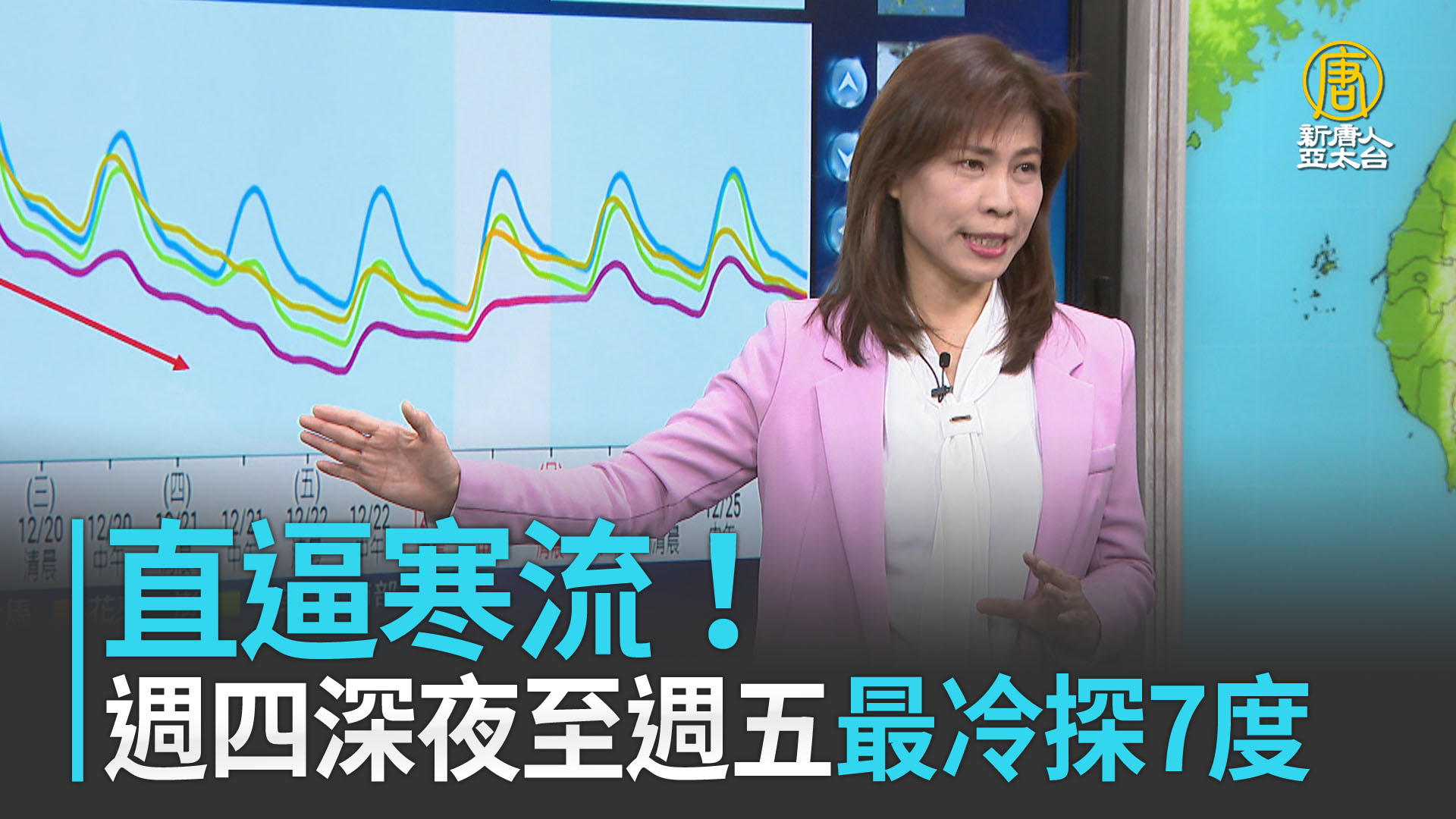 【新唐人亞太台 2023 年 12 月 19 日訊】鏡頭轉回台灣,帶您關心天氣,入冬以來,最強的大陸冷氣團報到,預估最冷時間點將落在週四深夜到週五清晨,最低溫將下探七度,台北也可能下探10度,有機會成為今年入冬首波寒流,而且會一路冷到禮拜六。