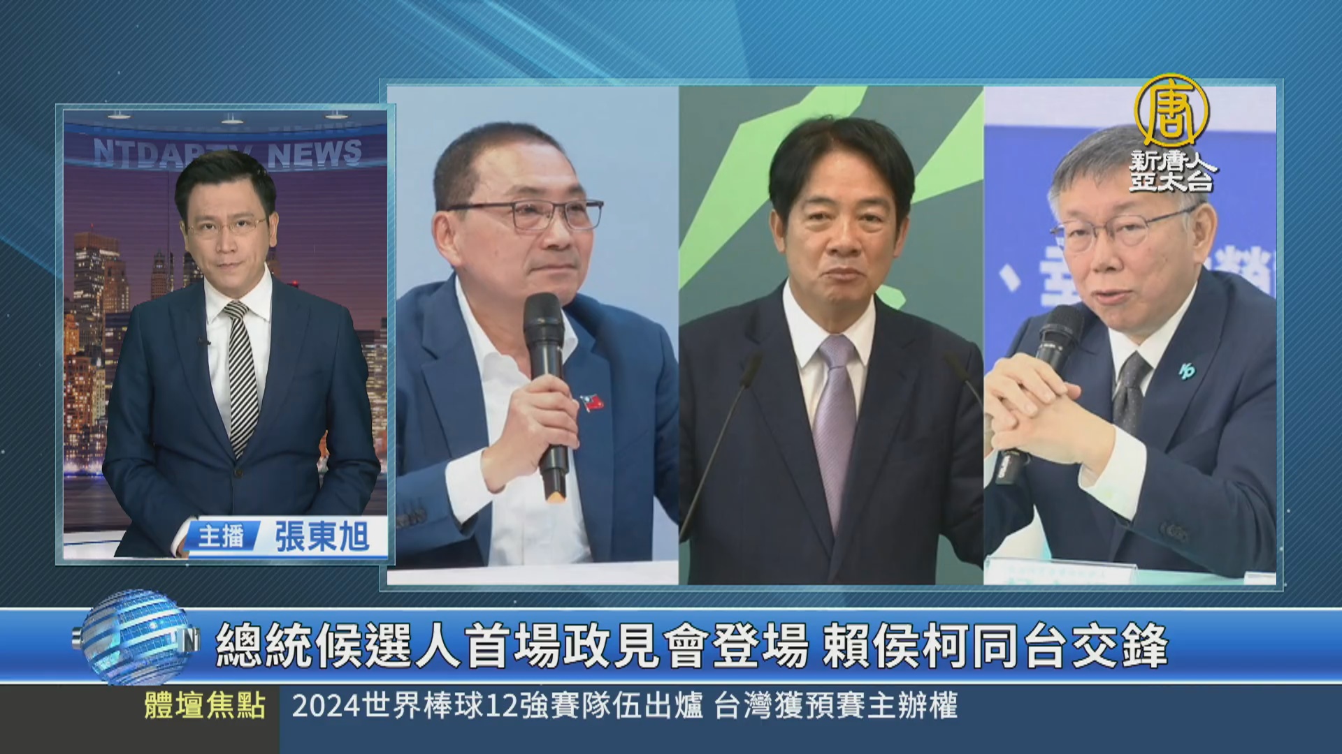 【新唐人亞太台 2023 年 12 月 20 日訊】新聞首先來聚焦,2024總統選戰,今天進入倒數24天,第一場總統候選人電視政見發表會,今晚7點登場,國民黨侯友宜、民進黨賴清德,以及民眾黨柯文哲稍早到達現場,候選人將分三輪發表政見,每一輪10分鐘,100分鐘的政見會,三人將直球對決。外界預估,兩岸,青年政策都是主要攻防議題。除了負責轉播的電視台外,也會在中選會網站與媒體網站直播。稍後有更多消息,我們將隨時為您插播掌握。