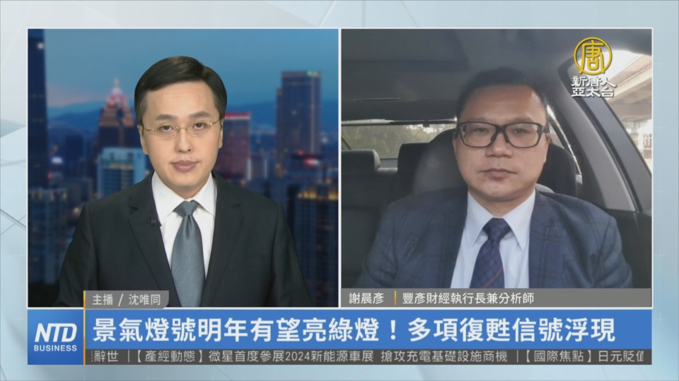 【新唐人亞太台 2023 年 12 月 25 日訊】儘管明年美中經濟乏力,台灣明年仍有望交出GDP成長3%以上成績。我們請教資深分析師謝晨彥,台灣國發會本週三將公布最新景氣燈號,不過今年除了9月黃藍燈外,幾乎都是低迷的藍燈,您怎麼觀察,何時有機會擺脫藍燈?景氣復甦腳步怎麼研判?