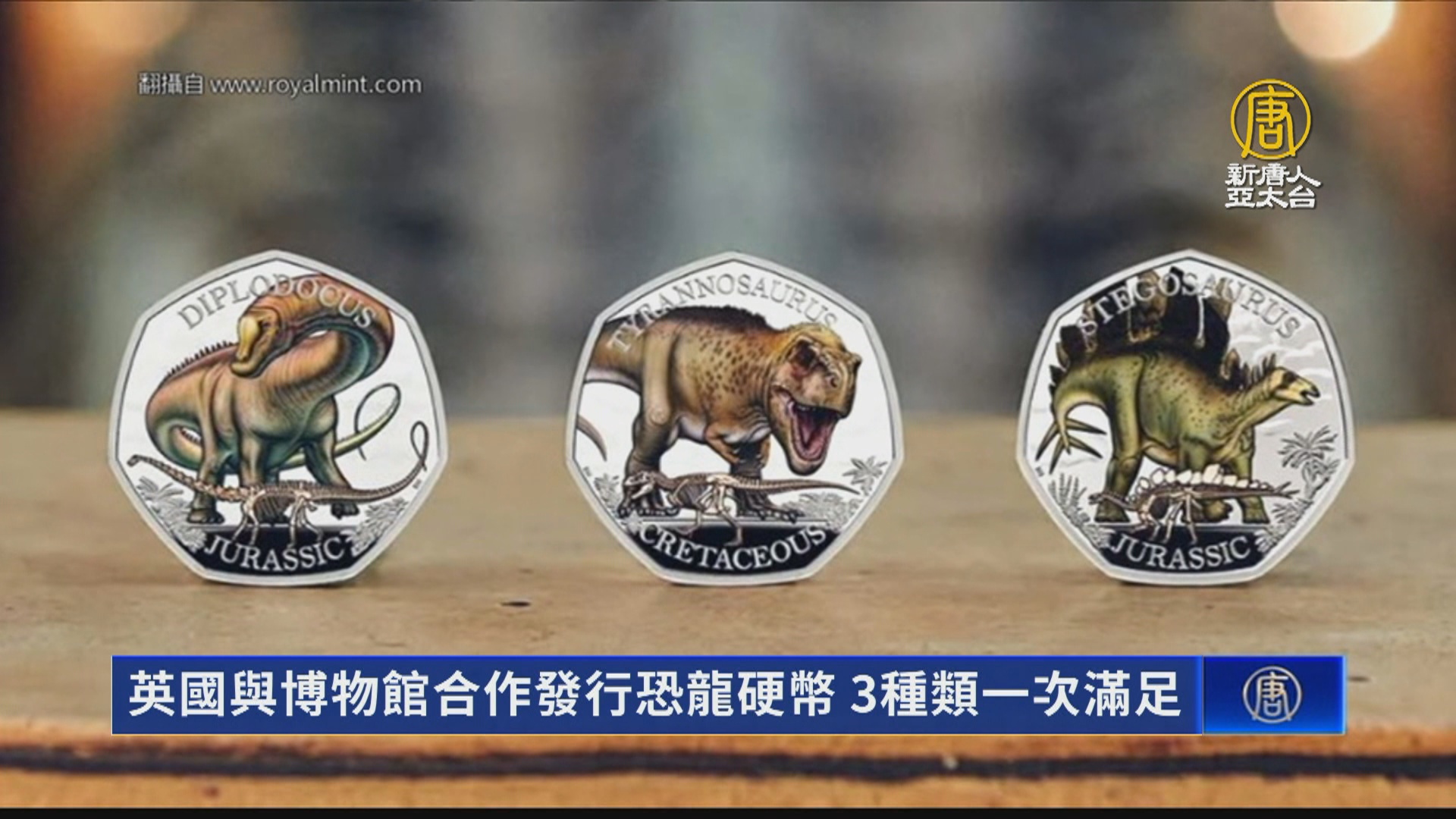 【新唐人亞太台 2023 年 12 月 26 日訊】小朋友最喜歡的恐龍圖案,也能成為紀念套幣。英國王家鑄幣廠與自然歷史博物館合作,近期推出專門用於收藏的恐龍紀念套幣,分別為各具特色的暴龍、劍龍和梁龍,要價從最便宜的11英鎊,到最貴的精製金幣1220英鎊。