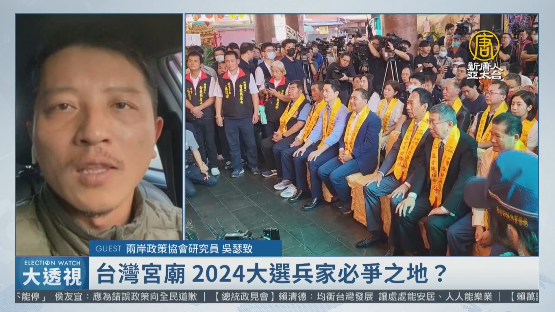 【新唐人亞太台 2023 年 12 月 26 日訊】勤走宮廟,是政治人物面對選戰,必備的行程,這也讓「宮廟」成為各候選人的兵家必爭之地。到底宮廟對選舉的重要性在哪裡?請教老師,為什麼每逢選舉,總是讓各陣營參選人趨之若鶩?