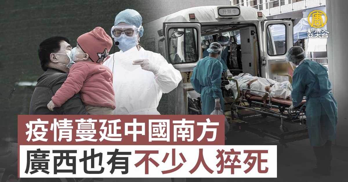 【新唐人亞太台 2024 年 01 月 03 日訊】疫情持續在中國各地爆發,廣州市、雲南昆明等南方大城市,也傳出醫院和診所爆滿,此外,廣西南寧農村傳出有多人猝死。