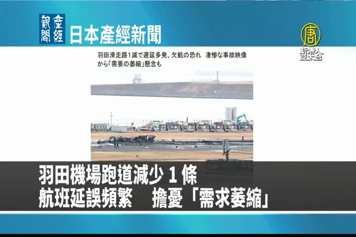 【新唐人亞太台 2024 年 01 月 04 日訊】來看到日本產經新聞報導:日本羽田機場跑道因為事故暫時關閉 1 條,航班延誤頻繁,引發「航空需求萎縮」的擔憂。