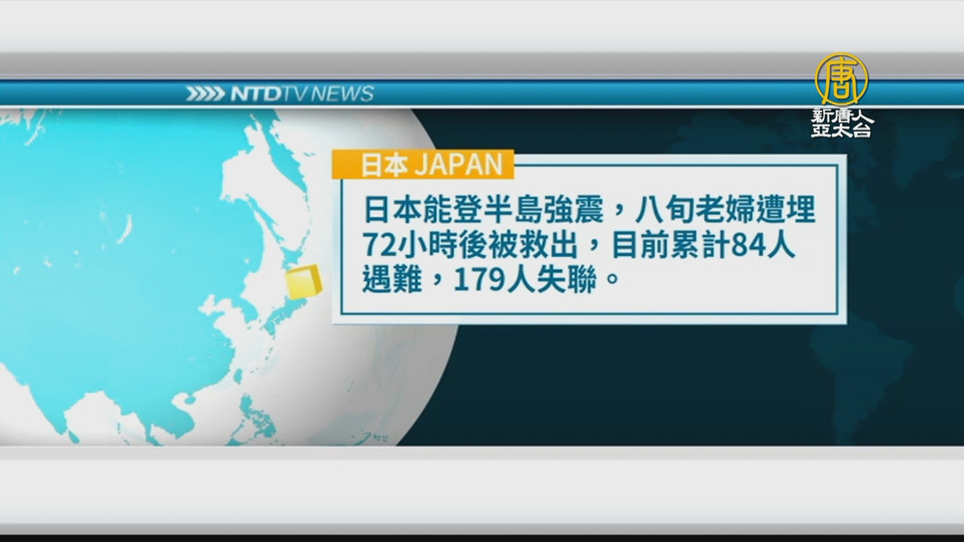 日本能登半島強震,八旬老婦遭埋72小時後被救出,目前累計84人遇難,179人失聯。