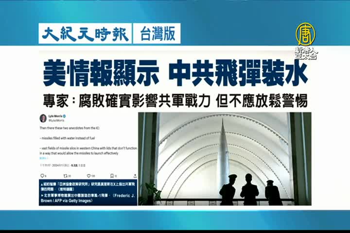 【新唐人亞太台 2024 年 01 月 08 日訊】接著看到大紀元時報台灣版報導:美國情報顯示,中共飛彈裝水。專家表示,腐敗確實影響共軍戰力,但不應放鬆警惕。