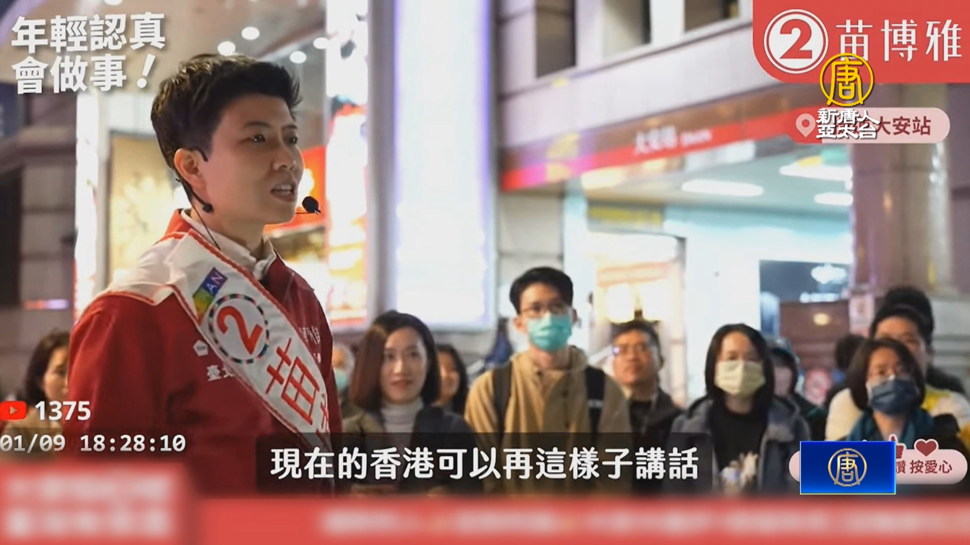 國民黨台北市立委候選人 羅智強:「當初挺香港的蔡英文、苗博雅,要不要繼續挺香港?就是說很多要讓香港的人,能夠移居台灣嘛,挺香港啊。」