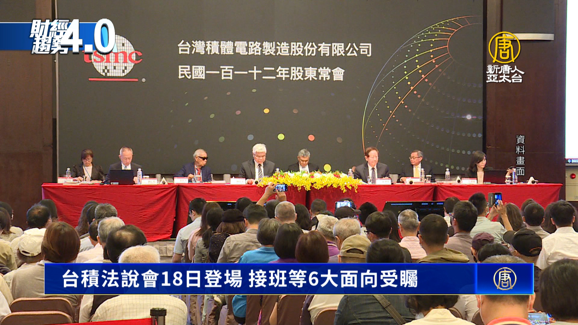 【新唐人亞太台 2024 年 01 月 13 日訊】繼續來關心,台積電董事長劉德音,日前拋出震撼彈,今年將退休不再擔任董事,下周18日,台積電將召開實體法說會,包括,接班、營運展望等6大面向,成為外資法人圈關注焦點。