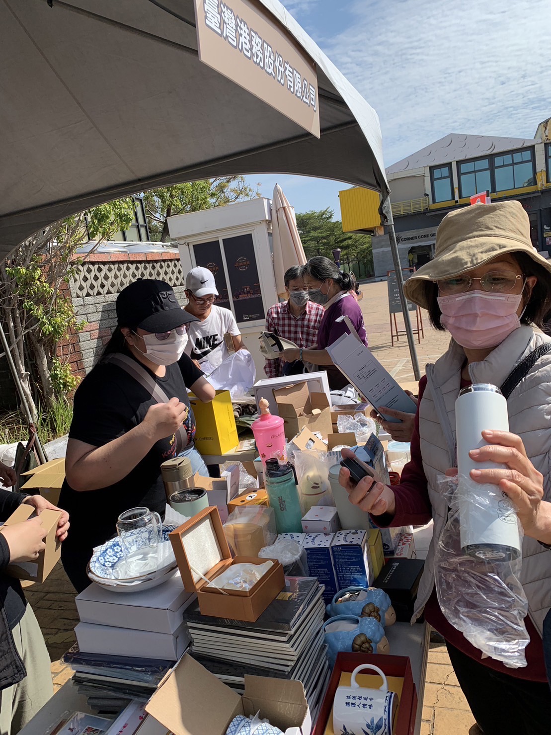民眾陸續至臺灣港務公司的攤位尋寶,排隊人潮絡繹不絕,熱情踴躍的挑選,不斷地說:「我要這個包包跟那個盤子。」所挑選義賣商品緊抓在手,深怕一放回攤位上,就被其他人挑選走,現場熱鬧非凡,民眾雙手大包小包提著滿滿戰利品,臉上洋溢著滿足的笑容,直呼「賺到了!」
