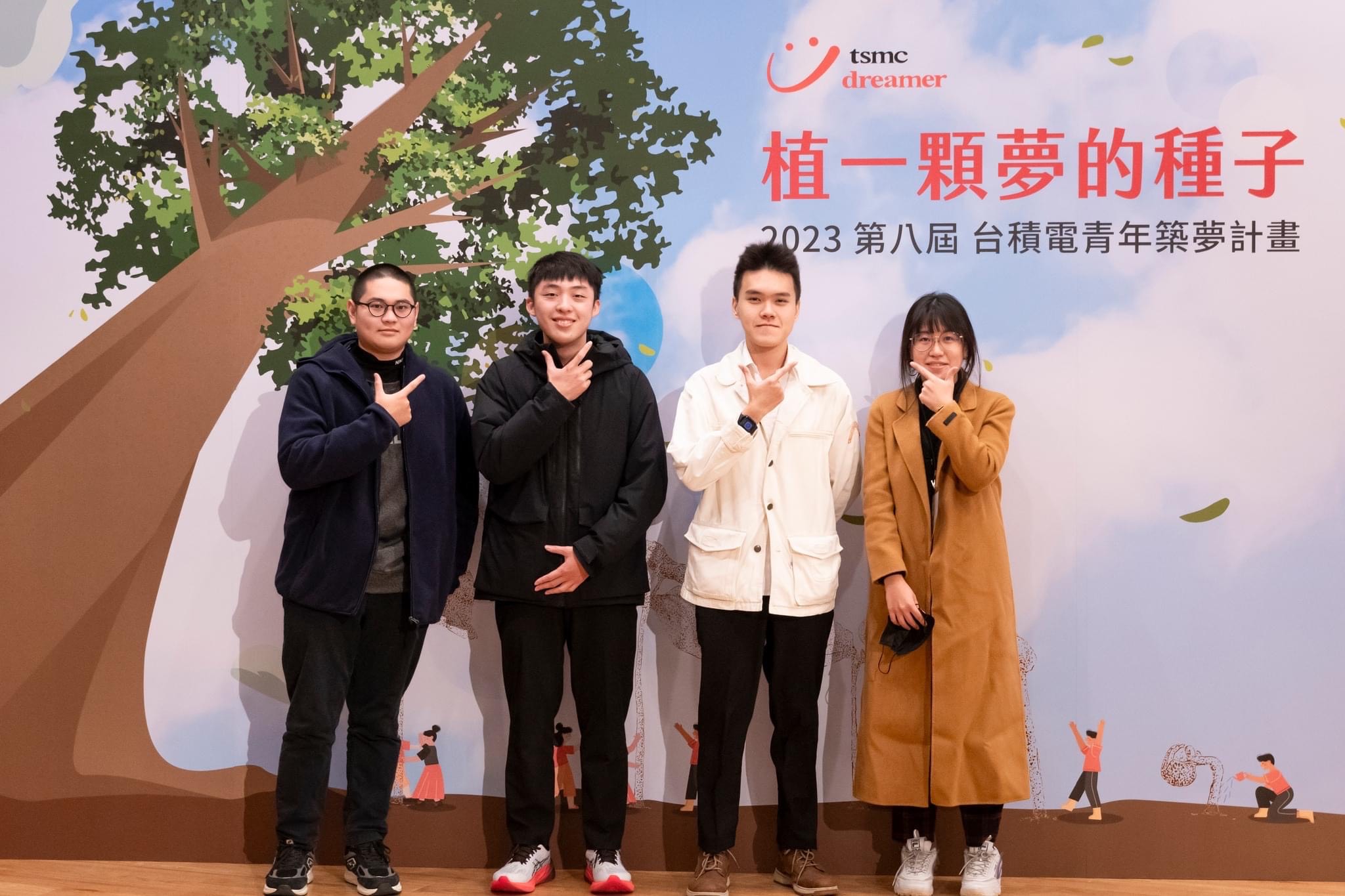 吳泓陞同學(右2)跨學系組隊,以「I have a dream 學習障礙也可以做科展」榮獲台積電文教基金會第八屆「台積電青年築夢計畫」補助。(台積電文教基金會提供)