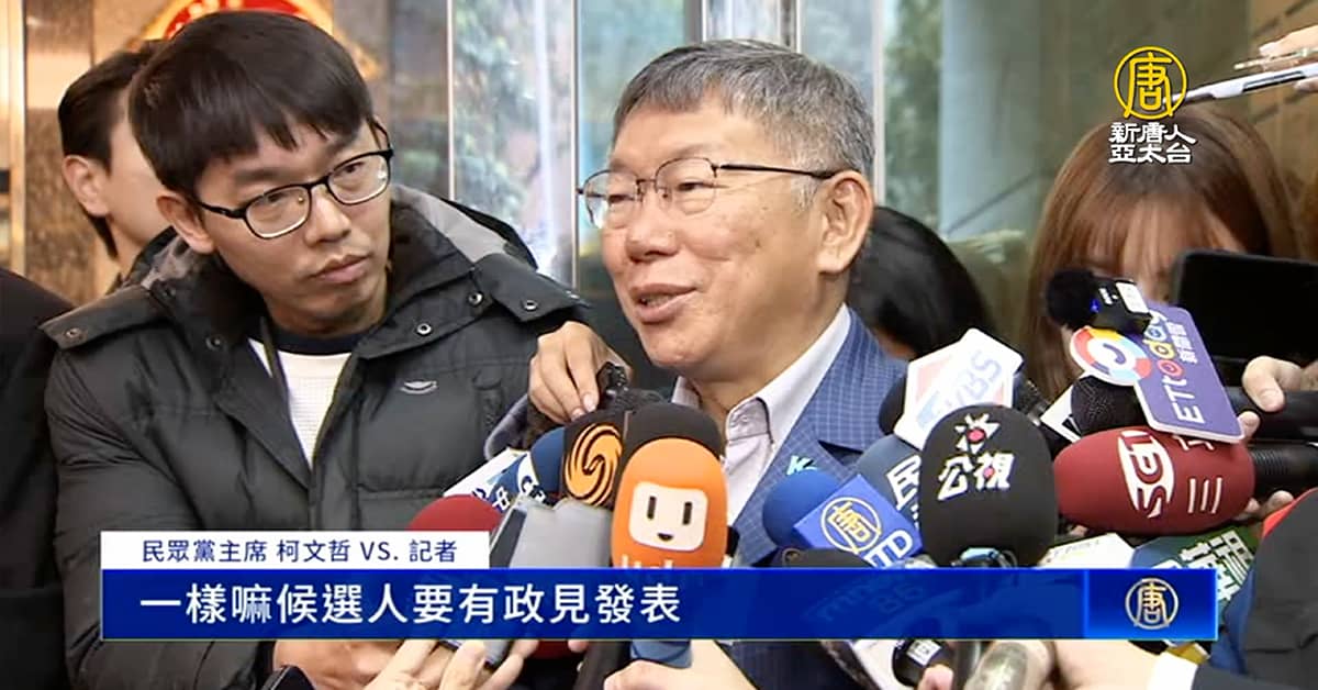 民眾黨主席 柯文哲 VS. 記者:「哇!這實在太有趣了,韓國瑜加黃國昌,這實在是這個畫面很難想像。一樣嘛,候選人要有政見發表,就是說你希望怎樣,所以不急啦,還有兩個禮拜,給大家思考一下。」「(陳佩琪的貼文,你拒接侯友宜的電話)她應該修改了吧,我昨天回去跟她講說,不要寫這些幹什麼,不是拒接,因為平常我的手機,常常是助理在拿,沒有時間,常常要隔一天才知道。(如果真的打來你要接嘛)再講吧。」