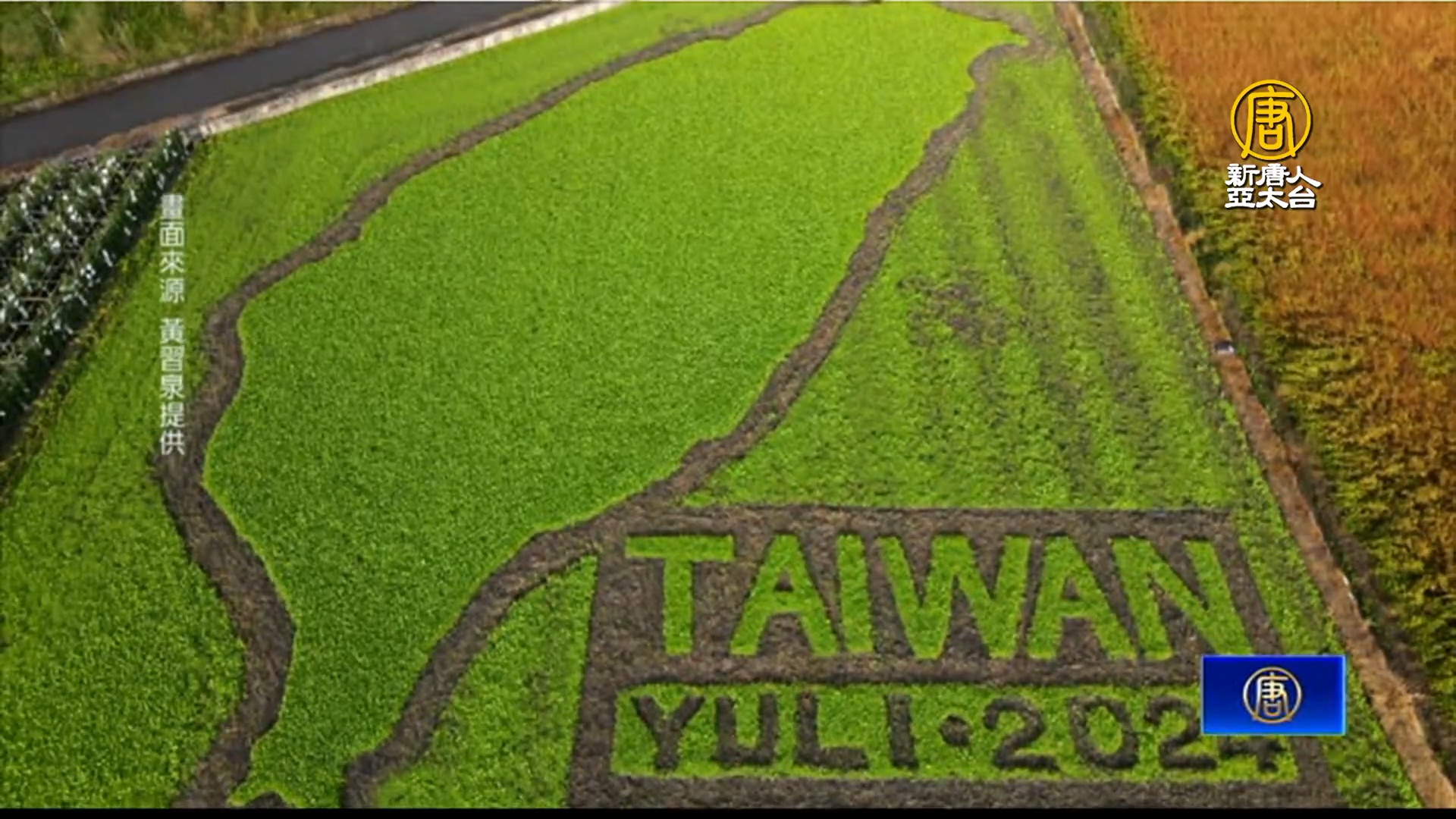 綠油油一大片,且工整的台灣圖騰,下方還用英文寫上花蓮玉里2024,獨特而壯闊的設計,吸引許多人前來搶拍。