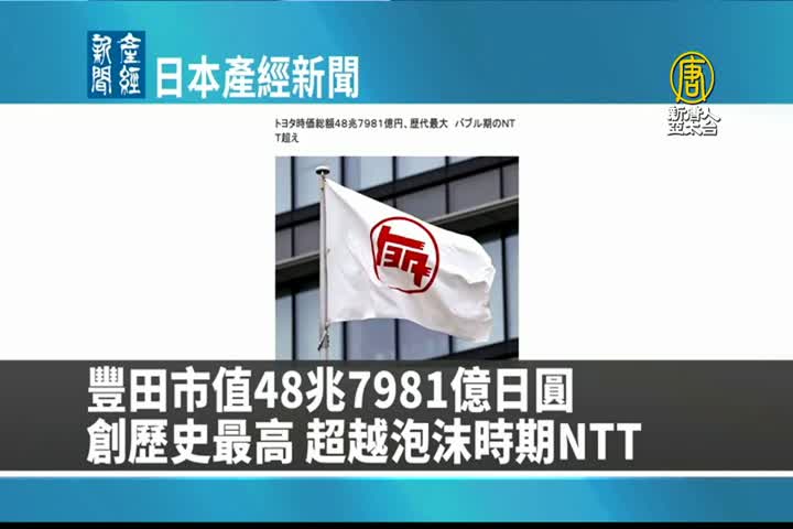 【新唐人亞太台 2024 年 01 月 24 日訊】來看到日本產經新聞報導:豐田市值48兆7981億日圓,創歷史最高,超越泡沫時期NTT。