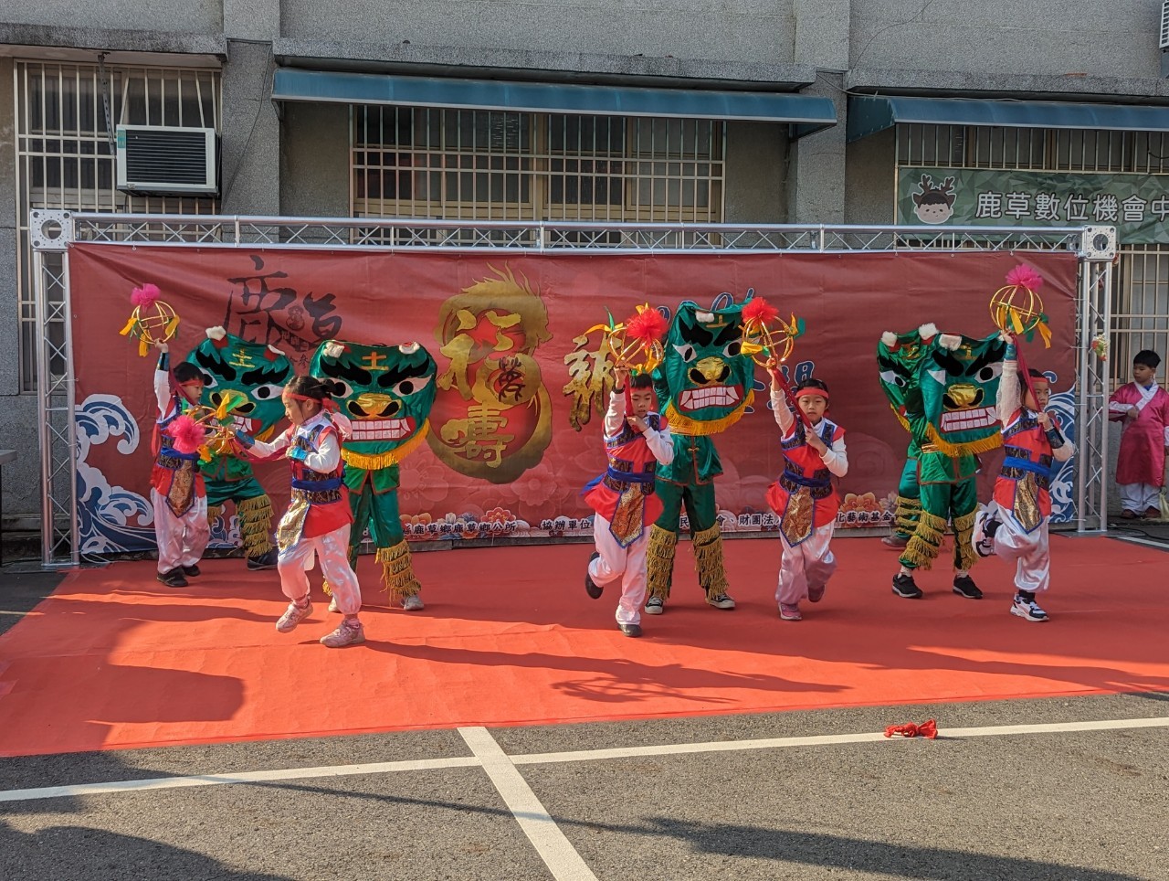 重寮國小帶來隍將舞,鹿草國小的熱舞以及竹園國小的直笛表演,熱鬧開場;鹿仔草文化藝術基金會則邀請鹿草鄉六位書法名師現場揮毫送春聯,將新年的祝福透過筆墨紅紙,寫入家家門戶,更增添除舊佈新的年味;還有舞動陶樂齡弦樂團、摸彩活動和可愛迷你馬OREO跟大小朋友相見歡。