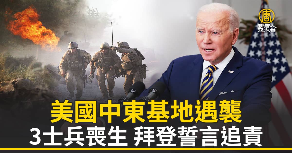 【新唐人亞太台 2024 年 01 月 29 日訊】中東局勢緊張再起,週日(1月28日),美軍中央司令部證實,無人機襲擊了美軍在約旦東北部的基地,3名美軍士兵喪生,另有超過30人受傷。拜登總統誓言追責。