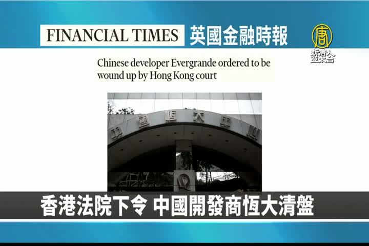 【新唐人亞太台 2024 年 01 月 30 日訊】接著是英國金融時報的報導:香港法院下令,中國開發商恆大清盤。