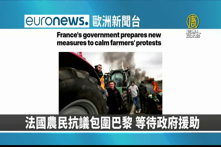 【新唐人亞太台 2024 年 01 月 31 日訊】來看到歐洲新聞台報導:法國農民抗議包圍巴黎,等待政府援助。