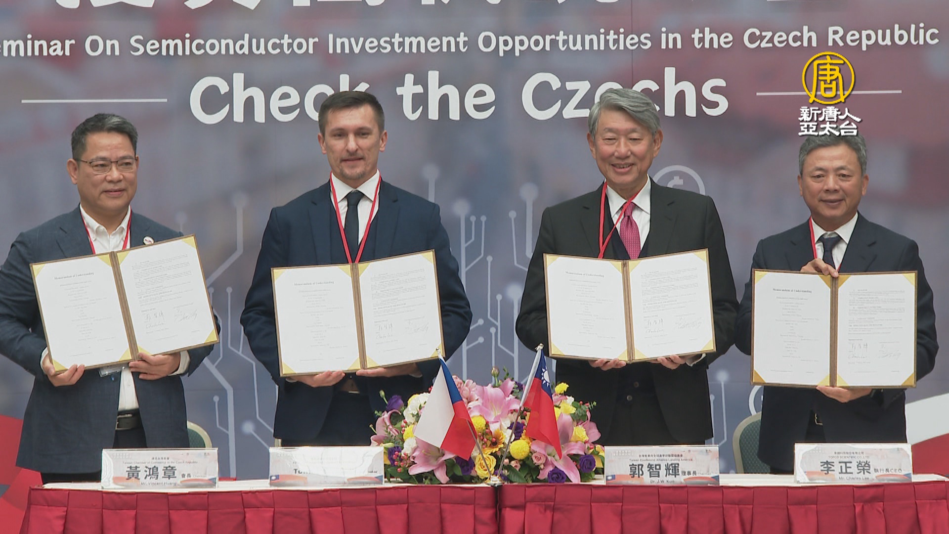 【新唐人亞太台 2024 年 02 月 03 日訊】好,那麼台積電在德國設廠,也推進台灣半導體供應鏈,在歐洲的布局。本週,台灣和捷克產業代表,在台北簽署合作備忘錄,期盼強化合作,拓展歐盟半導體商機。