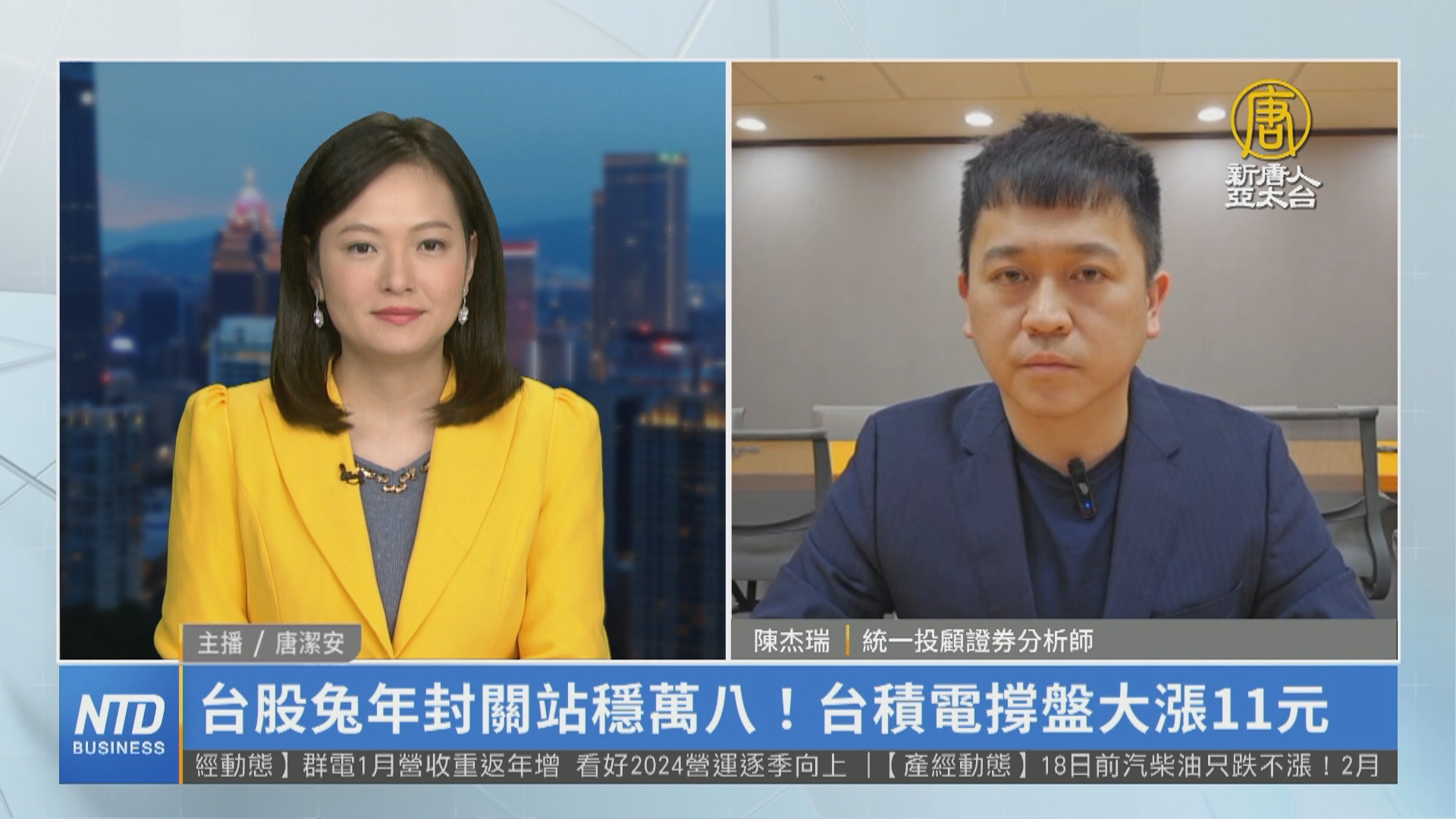 【新唐人亞太台 2024 年 02 月 05 日訊】台股在2023年繳出了26%以上的成績,在亞洲僅次日本,黃曆年前的封關表現,其實也相當不錯,台股站上萬八,超過前波的高點,我們請教統一投顧證券分析師陳杰瑞,怎麼看今天封關行情?許多投資人選擇抱股過年,年後是否有新一波漲勢可以期待,請教您的看法?