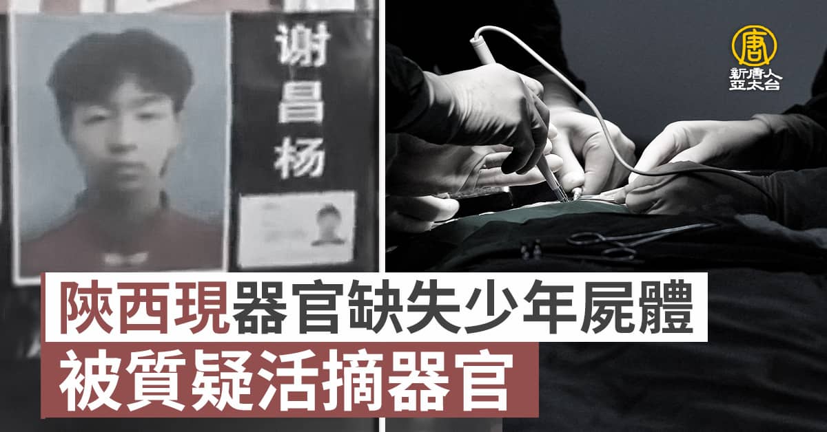 陝西男孩謝昌楊失蹤十個月後,被發現疑似屍體,但是頭頸、四肢和雙腎都已不見,民眾高度懷疑是被活摘了器官,所以才被滅屍的。目前中國有大量青少年失蹤,同時也出現大量「腦死亡」器官捐獻者,僅今年1月就至少有5例,而且大部分都是年輕人,引發中國網友質疑,為何會有這麼多「腦死亡」?