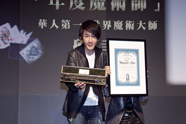 2012-04-06 21:56:56魔術大師劉謙,4月1日獲得魔術界最權威的大獎--好萊塢魔術藝術學院的「年度魔術師」,帶著榮耀回到故鄉,媒體見面會上和大家分享喜悅,也幫助一位癌症病童實現夢想。