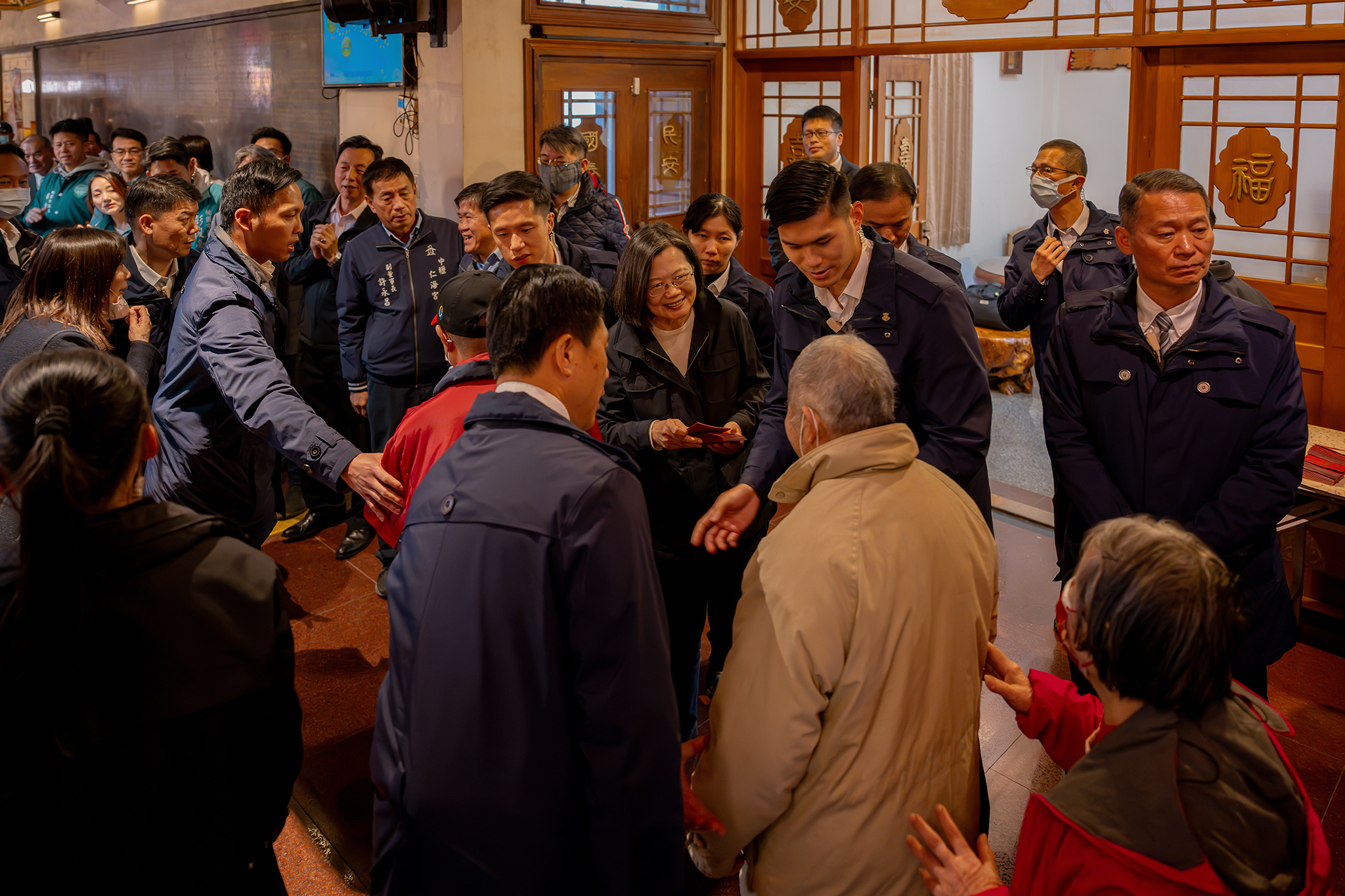 年初二總統行程滿檔,上午到關渡宮發紅包,並先後慰問國軍與海巡同仁。