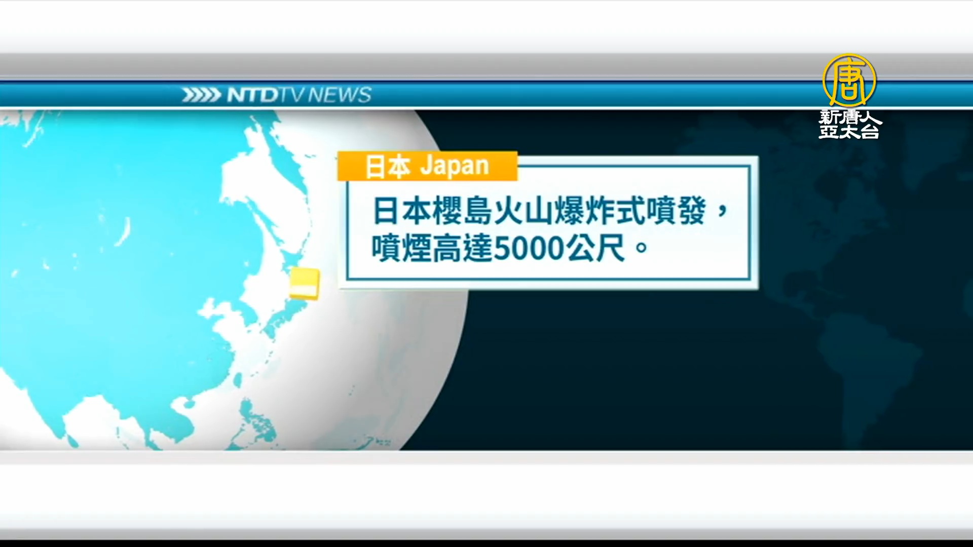 日本櫻島火山爆炸式噴發,噴煙高達5000公尺。