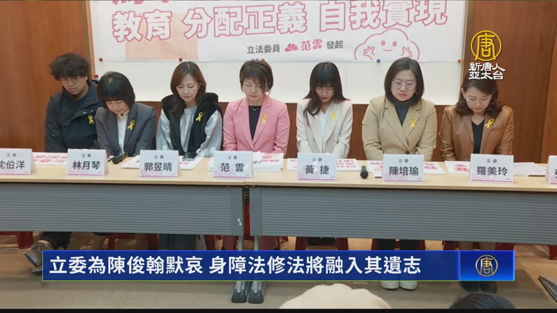 【新唐人亞太台 2024 年 02 月 16 日訊】民進黨立委范雲號召十位立委,共同發起「為下一代而戰國會連線」,今天在立法院舉行成立記者會。而開場時,立委們也以一分鐘的靜默,追悼辭世的罕病人權律師陳俊翰。范雲表示,「身障法」中公平正義的部分,是連線最關心的議題之一,這同時也是陳俊翰律師最關心的部分,會透過管道取得陳律師的修法版本,融入大家所提出的版本。