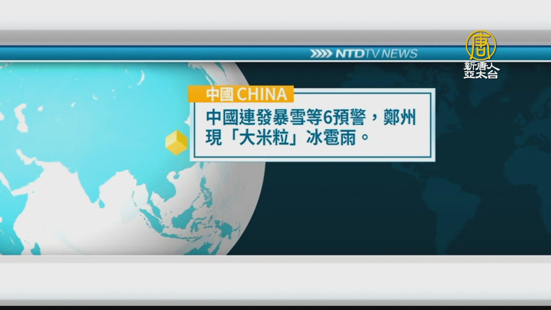 中國連發暴雪等6預警,鄭州現「大米粒」冰雹雨。