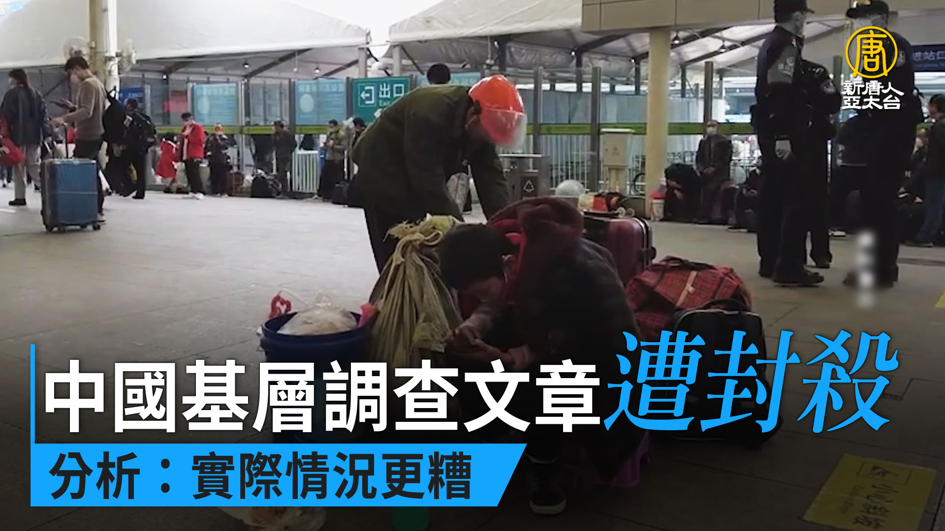 【新唐人亞太台 2024 年 02 月 21 日訊】近日,一篇反映中國社會基層困境的調查文章,在網上發表後,很快被大陸全網封殺。分析指出,文章所反映的社會問題,只是冰山一角,實際情況還要嚴重得多。