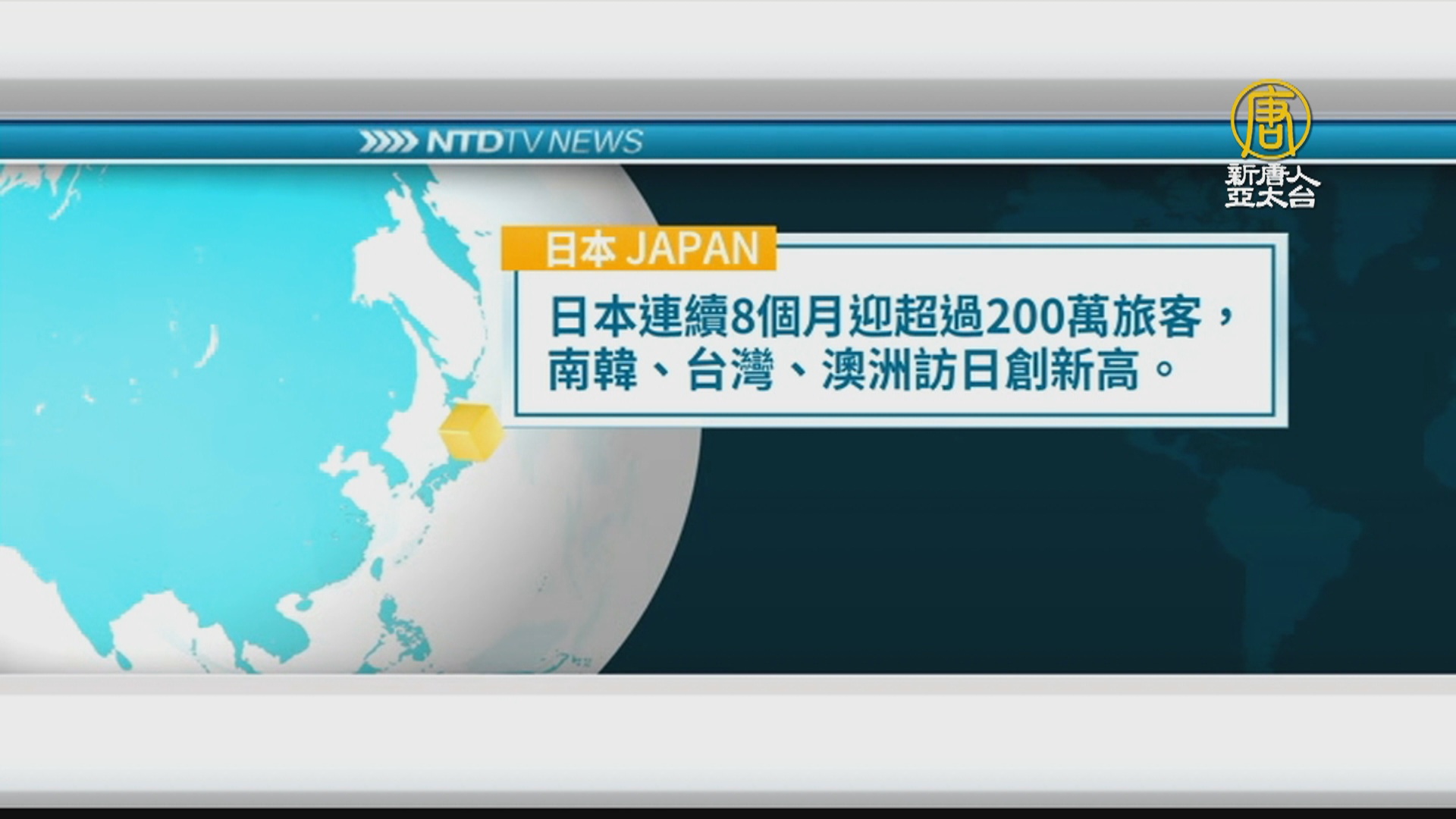 日本連續8個月迎超過200萬旅客,南韓、台灣、澳洲訪日創新高。