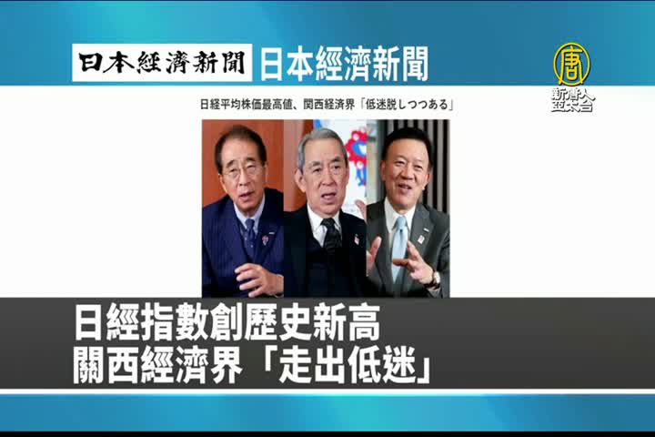 【新唐人亞太台 2024 年 02 月 23 日訊】來看到日本經濟新聞報導:日經指數創下歷史新高,關西經濟聯合會會長松本正義認為,這代表經濟界正在擺脫長期低迷。