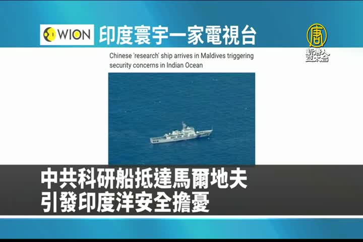 【新唐人亞太台 2024 年 02 月 23 日訊】最後是印度寰宇一家電視台報導:在印度和馬爾地夫緊張局勢日益加劇之際,一艘中共「研究」船週四進入馬爾地夫水域。