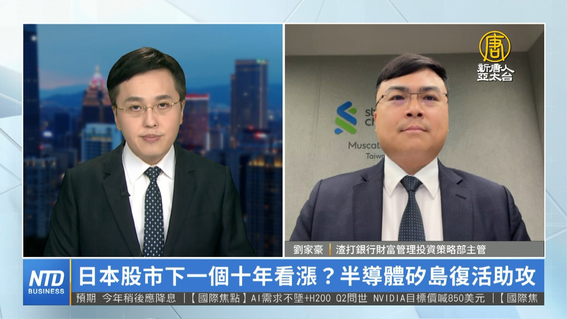 【新唐人亞太台 2024 年 02 月 23 日訊】日本股市,昨天是正式刷新了,之前的歷史天花板,38915點,刷新34年最高,我們請教渣打銀行財富管理投資策略部主管劉家豪,日本股市從去年到現在,表現在全球幾乎是相當相當不錯,怎麼看日股這波上揚主要的推動成長力,是來自什麼地方?尤其日本未來央行政策,是不是有機會轉向,會對日本經濟帶來什麼樣的一個挹注,請教您看法。