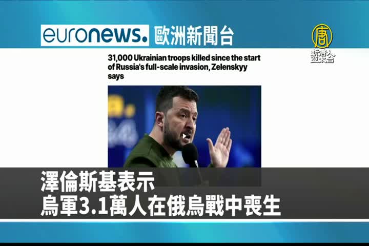 【新唐人亞太台 2024 年 02 月 26 日訊】來看到歐洲新聞台報導:烏克蘭總統澤倫斯基表示,俄軍入侵以來,有3.1萬名烏克蘭軍人喪生。