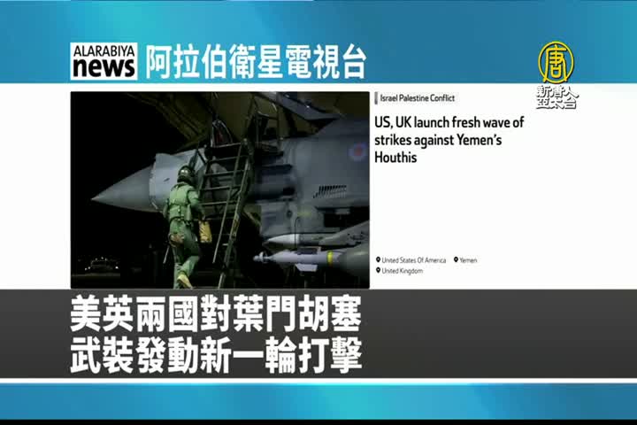 【新唐人亞太台 2024 年 02 月 26 日訊】來看到阿拉伯衛星電視台報導:美國和英國對葉門胡塞武裝發動新一輪打擊。