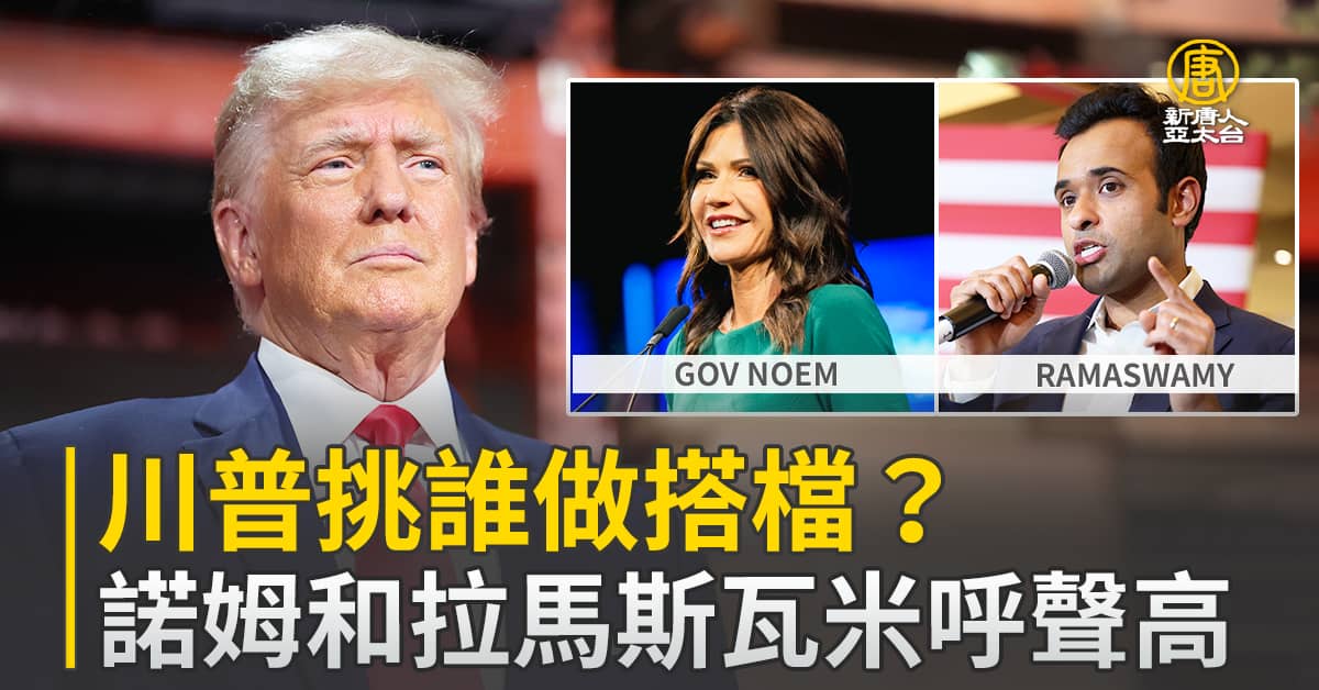 【新唐人亞太台 2024 年 02 月 26 日訊】川普在贏得共和黨提名的路上高歌猛進,其競選搭檔的人選也受到關注。一項最新民調顯示,南達科他州州長諾姆和企業家拉馬斯瓦米,呼聲最高。