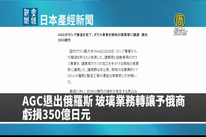 【新唐人亞太台 2024 年 02 月 29 日訊】來看到日本產經新聞報導:日本最大玻璃製造商AGC宣布退出俄羅斯,玻璃業務轉讓給當地商人,總計虧損350億日元。