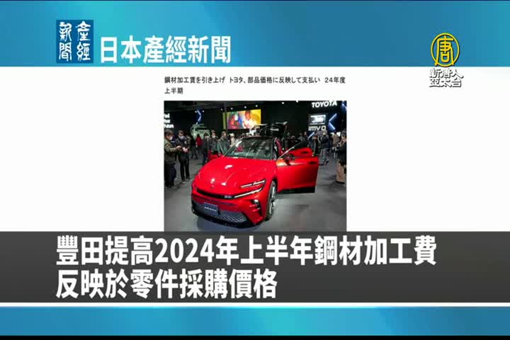 【新唐人亞太台 2024 年 03 月 01 日訊】來看到日本產經新聞報導:豐田汽車決定提高2024年上半年鋼材加工費,透過零件採購價格回饋利潤。