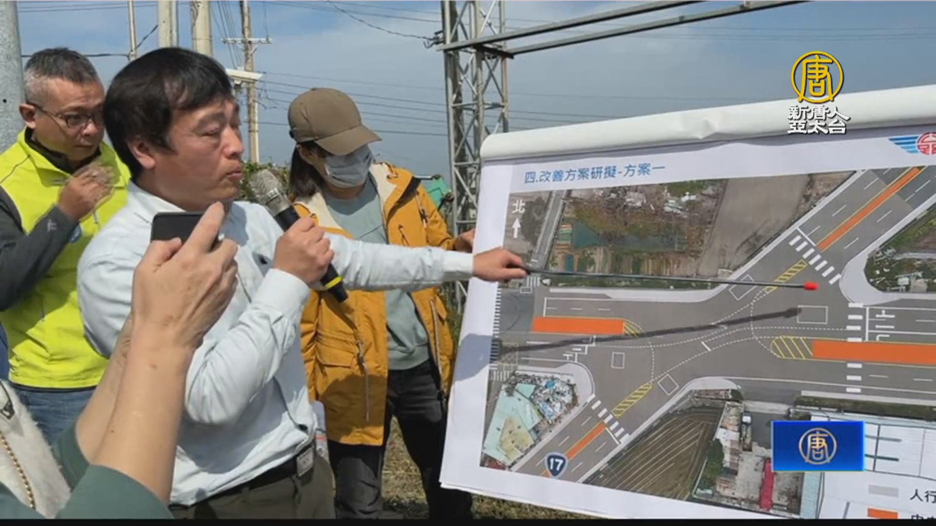 來到當時事故現場,這裡是台17線與台61乙線交岔路口,交通部公路局中區養護工程分局在路旁進行簡報,提出三個解決方案,邀請警方以及專家學者到場會勘,