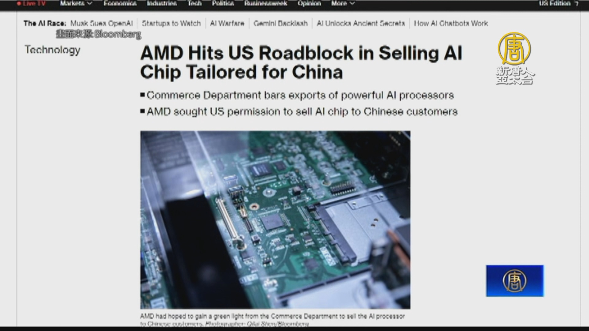 【新唐人亞太台 2024 年 03 月 05 日訊】美國持續打擊中共半導體,彭博社報導,AMD原本要出口降規版的AI晶片給中國大陸客戶,但美國官員告知,這款晶片太強大,必須獲得美國商務部許可,才能出售。